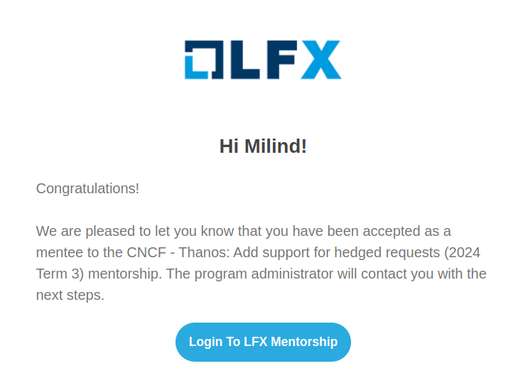 When LFX’24 Term 3 applications opened, I applied again. This time, I got selected! My project was CNCF - Thanos: Add support for hedged requests (2024 Term 3) with amazing mentors - Giedrius Statkevičius and Saswata Mukherjee. It turned out to be a great experience.